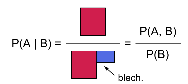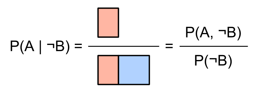 \($\bP(B = \false \mid A = \true) = \frac{\bP(A = \true, B = \false)}{\bP(A = \true)}\ ,\)$